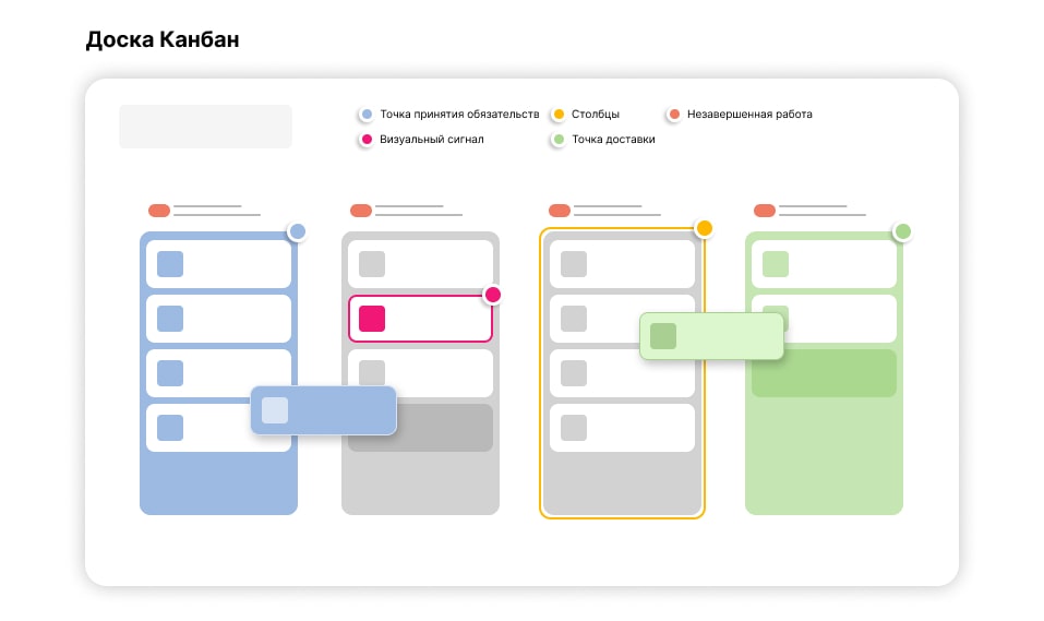 - Создать колонки под каждую стадию‚ визуализировать задачи и их статусы.